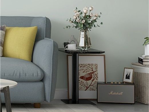 缔造 极简 黑玫瑰天然石+不锈钢电镀灰钛拉丝 黑玫瑰天然大理石 0.4米边几¥2638