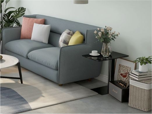 缔造 极简 高密度板贴白蜡木皮做碳灰色面板+ 碳素钢喷哑黑色脚 0.89米茶几¥2421