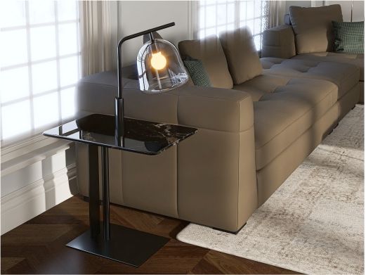 缔造 极简 黑玫瑰天然石材+ 碳素钢框架喷涂灰钛色+马铵硬皮 0.625米边几¥2276