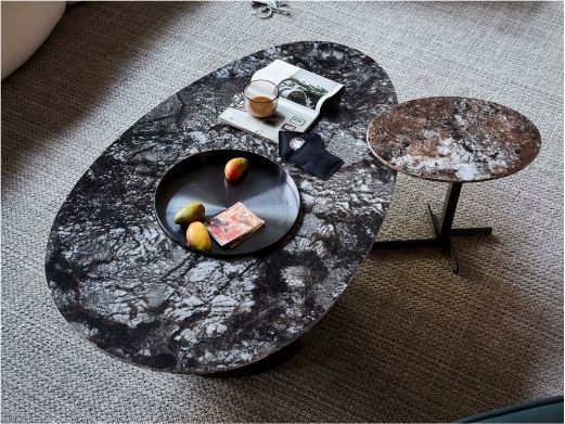 缔造 极简 大象白天然石面+碳素钢喷哑黑色脚 大象白天然大理石 0.4米边几¥2493