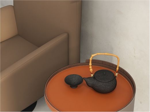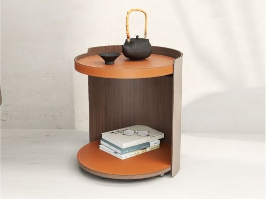 缔造 极简 E1级中纤板+马鞍硬皮+不锈钢条装饰 马铵硬皮面 0.5米圆几边几¥2465