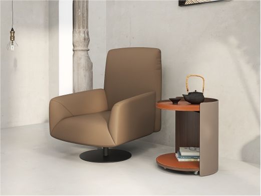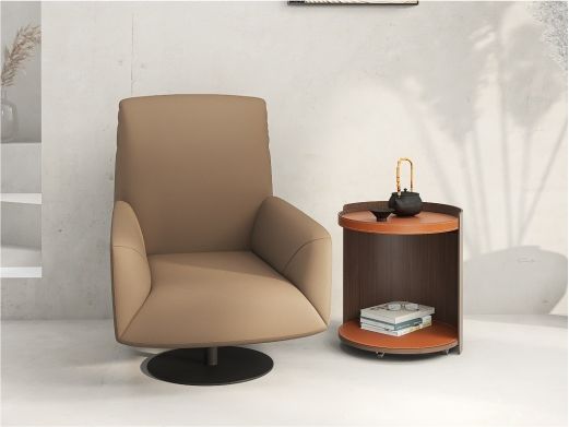 缔造 极简 碳素钢立柱+E1级中纤板扪马鞍硬皮+活动滑轮 马铵硬皮面 0.51米圆几边几