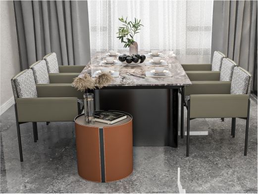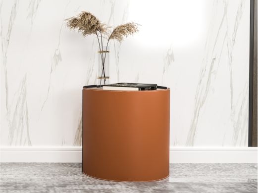 缔造 极简 E1级中纤板+马鞍硬皮+不锈钢条装饰 马铵硬皮面 0.5米圆几边几