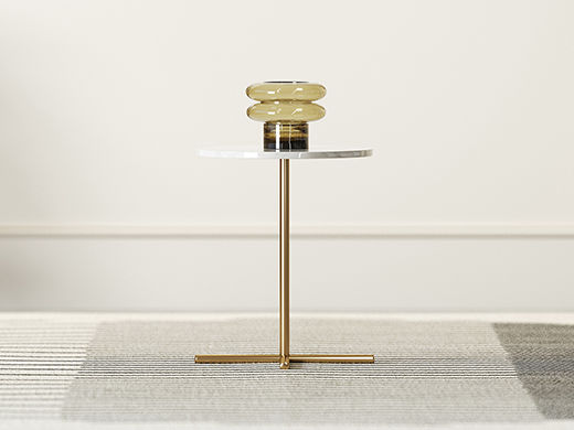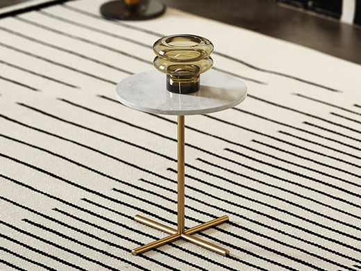 鹿屿 轻奢 天然石中花白+金属 0.4米圆形边几