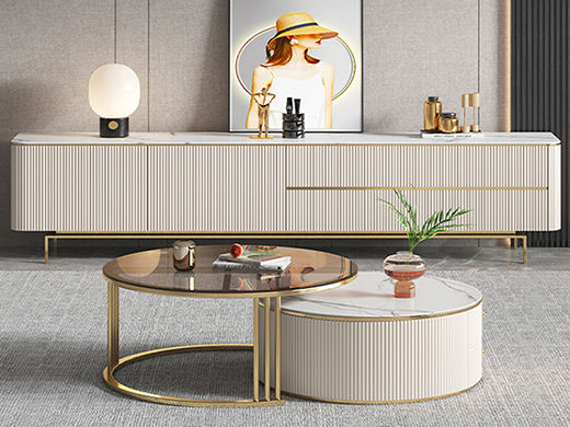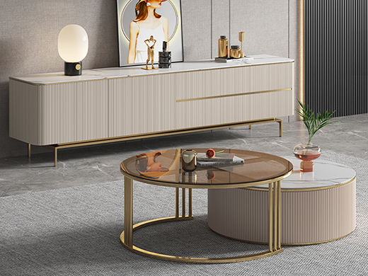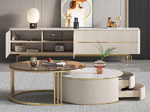柏思戈 轻奢 岩板+E1级环保板材+烤漆+钢化玻璃+不锈钢镀金+亮光岩板面 卡其色 0.8米组合茶几 |
