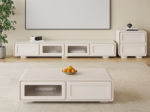 云端 奶油风 E1板材烤漆 奶白色 1.3米茶几¥1104