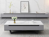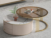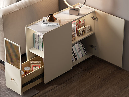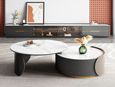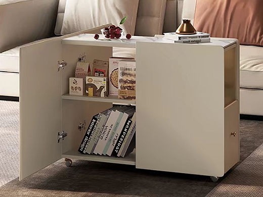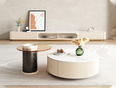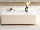 云端 奶油风 实木多层板弯板+E1板材,亮光雪山石岩板 奶白色 1.3米茶几¥3446