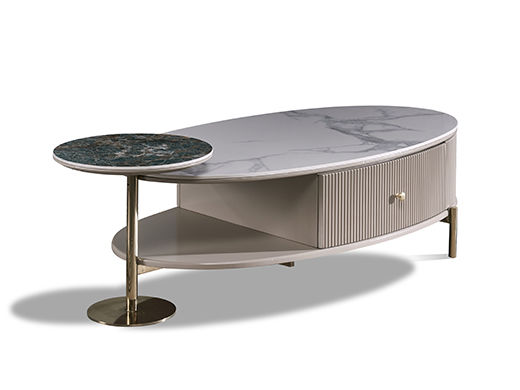 拜洛迪 轻奢 板木结合配拉丝钛金不锈钢+大理石 白色 1.3米茶几¥5743