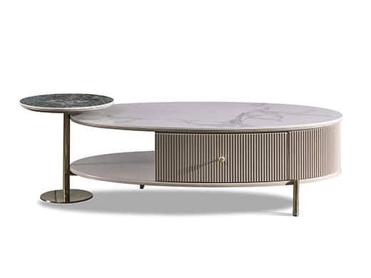 拜洛迪 轻奢 板木结合配拉丝钛金不锈钢 大理石面 白色 0.8米圆形组合茶几¥5087