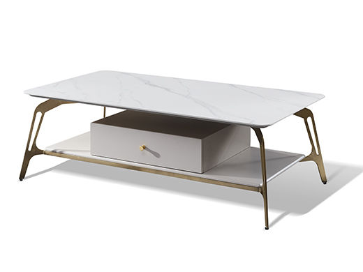 拜洛迪 轻奢 板木结合配拉丝钛金不锈钢+大理石 白色 1.3米茶几¥5743