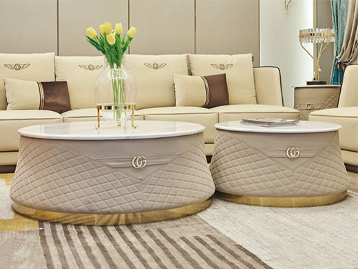 拜洛迪 轻奢 底架扪皮+大理石 浅卡其色 圆形 1米组合茶几