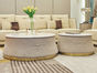 拜洛迪 轻奢 板木结合配拉丝钛金不锈钢 大理石面 白色 0.8米圆形组合茶几¥5087