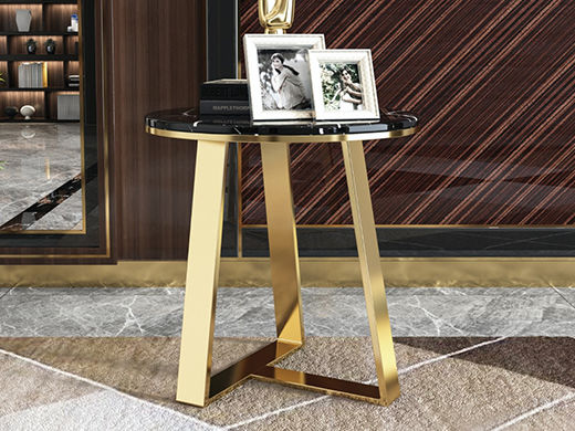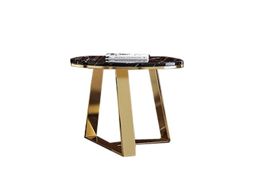 拜洛迪 轻奢 大理石面+拉丝钛金不锈钢 黑色 0.55米角几边几