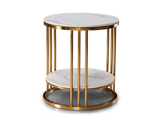 拜洛迪 轻奢 板木结合配拉丝钛金不锈钢 大理石面 白色 0.8米圆形组合茶几¥5087