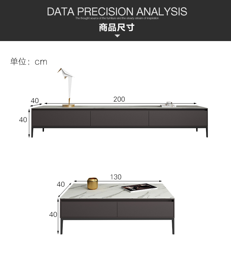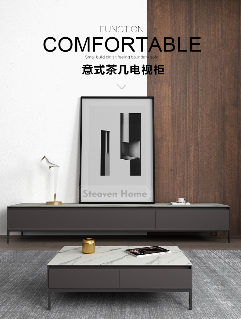 B系优选 现代简约 岩板+E1级环保板材+烤漆+实木抽屉+碳素钢 1.3米茶几+2米电视柜(未开电源孔) |