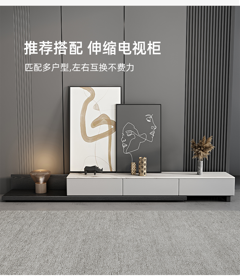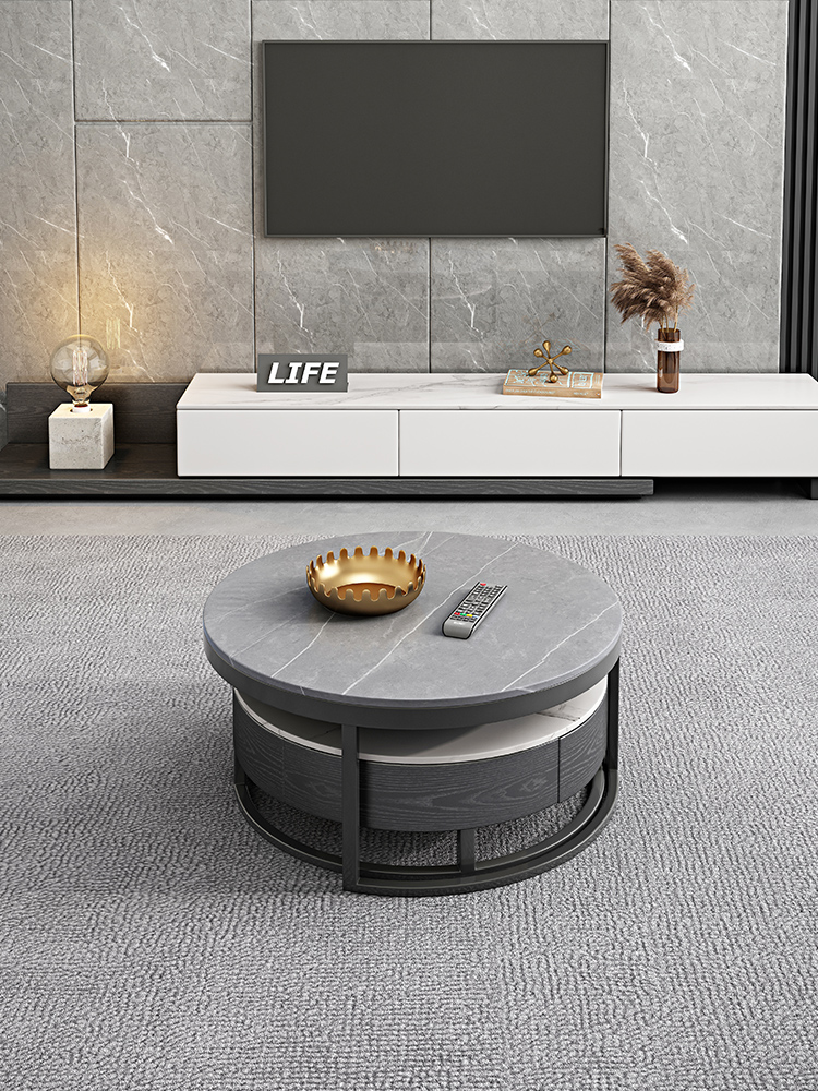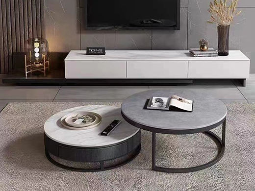 B系优选 现代简约 E1板材高级灰烤漆+哑光岩板面,实木抽屉 大小圆茶几+1.8米电视柜(未开电源孔)