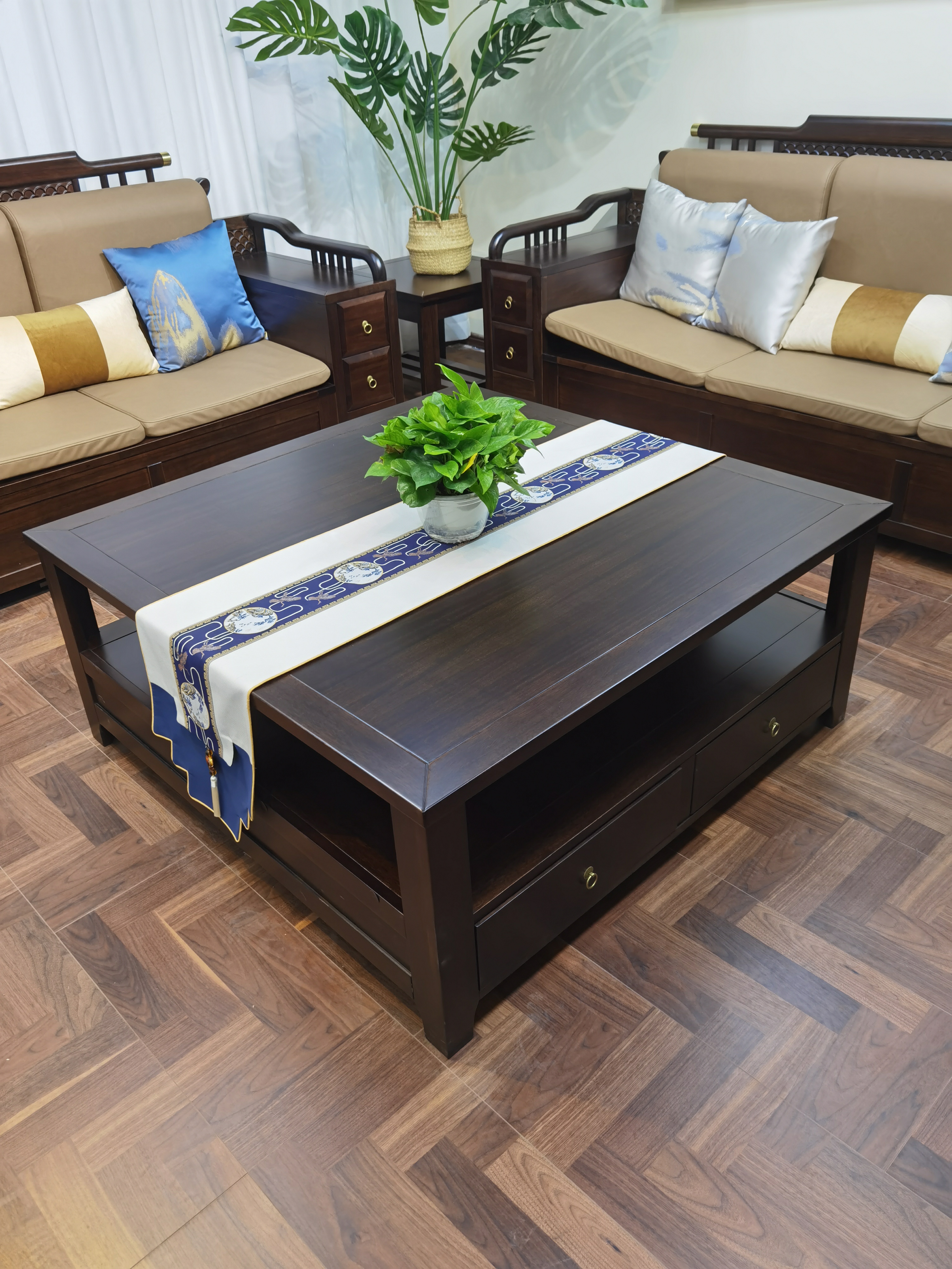 墨槿 新中式 小乌金+实木多层板 乌金色 1.2米方形茶几