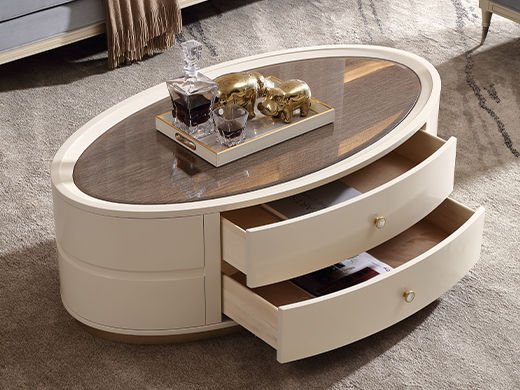 艾美侈 美式 进口榉木+艳阳花木皮+不锈钢拉手 香槟银+古典白 1.25米茶几¥6177