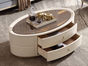 艾美侈 美式 俄罗斯桦木+实木多层板+环保板+钢化玻璃 高光白色 椭圆形咖啡桌 1.39米边几