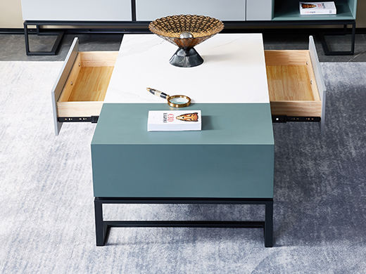 左右家居 现代简约 E1级密度板+进口松木+静音缓冲路轨+岩板+碳素钢五金脚 1.3米茶几¥4743