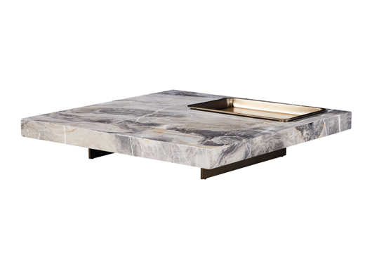 Milos米洛斯 极简 天然烟熏木饰面 天然大理石面 E1级高纤板 环保水性漆 碳素钢金属烤漆脚 1.38米茶几