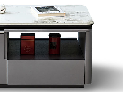 梵纳意简 极简 香奈儿岩板+咖啡金油漆+黑榆木 图片色 1米茶几