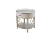 艾美侈 美式 进口榉木+进口沙比利木皮+钢化玻璃 珍珠银 1.066米圆形茶几