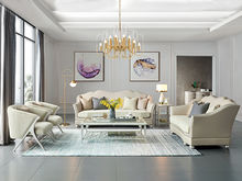美克金典 美式 进口榉木+实木多层板+钢化玻璃 米白+香槟银 1.38米茶几¥2926