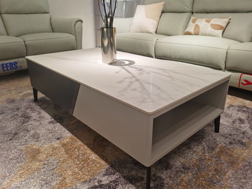 芝华仕 现代简约 12mm厚银丝白岩板+E1中纤板柜体外侧实色漆+内侧同色三胺板+碳素五金脚 1.3米长茶几 |