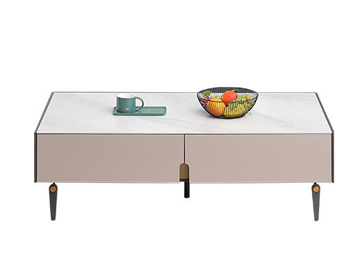 B系优选 现代简约 亮光岩板+亮光烤漆柜子 钛金五金底架+实木抽屉 卡其色 1.3米茶几¥2330