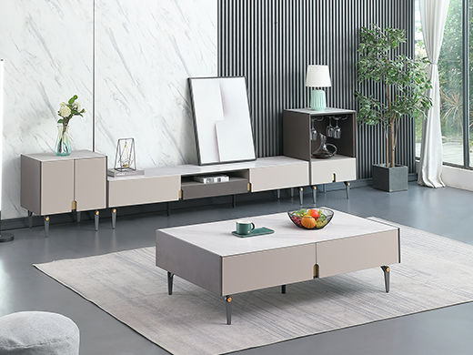 B系优选 现代简约 E1中纤板+多层实木板+天然木皮+静音缓冲导轨+碳素钢五金+岩板+环保油漆 图片色 1.3米茶几+2米电视柜(未开电源孔)(不含边柜)