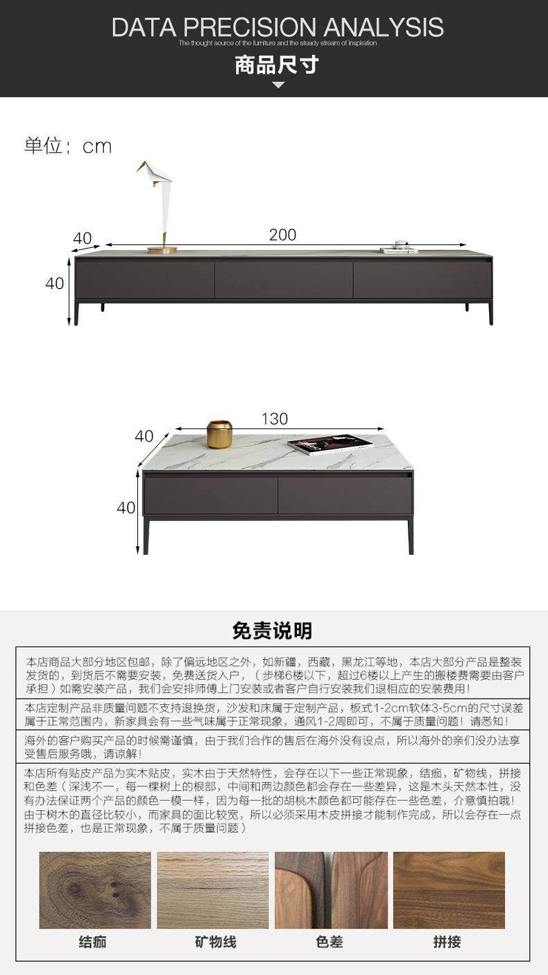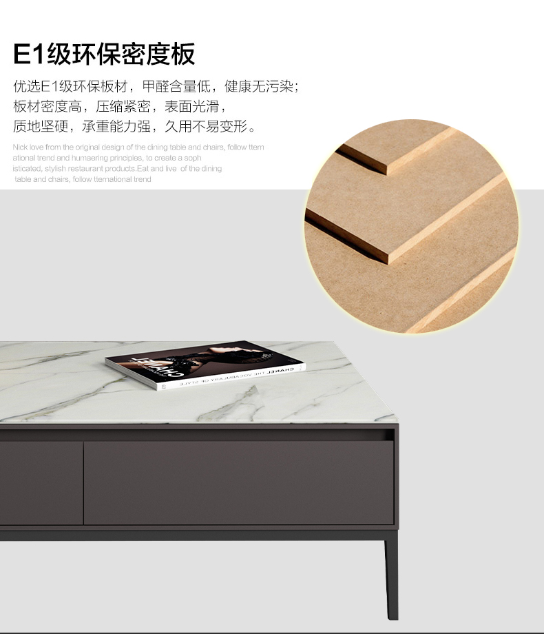 B系优选 现代简约 E1中纤板+多层实木板+天然木皮+静音缓冲导轨+碳素钢五金+岩板+环保油漆 1.3米茶几