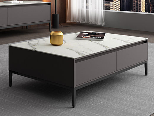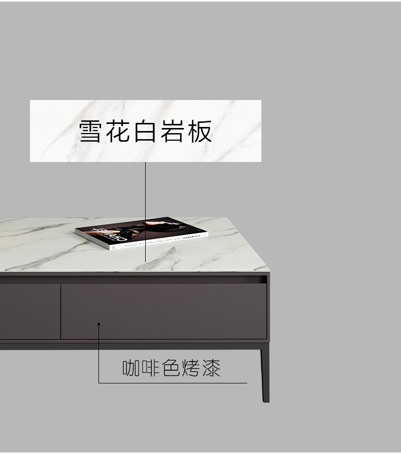 B系优选 现代简约 E1板材高级亮光灰烤漆,实木抽屉+亮光雪山石岩板面+五金脚 1.3米茶几
