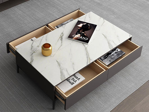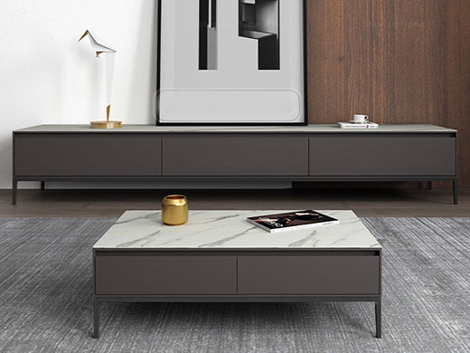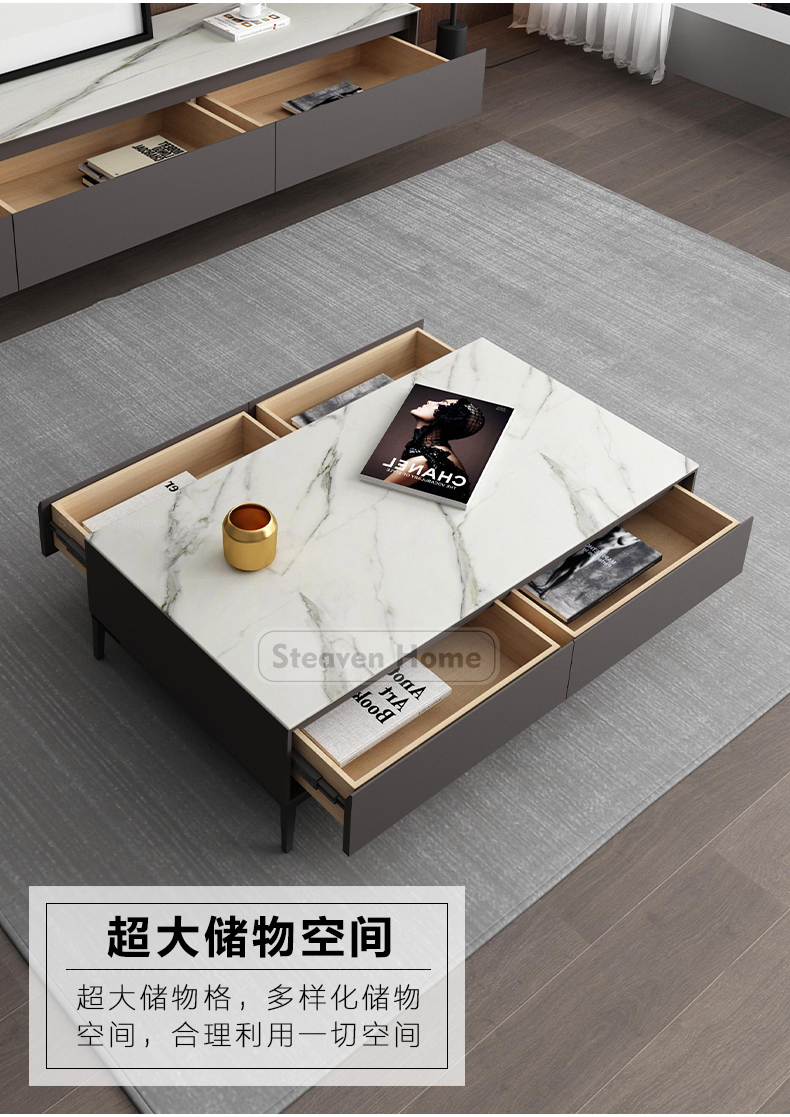 B系优选 现代简约 岩板+E1级环保板材+烤漆+实木抽屉+碳素钢 1.3米茶几