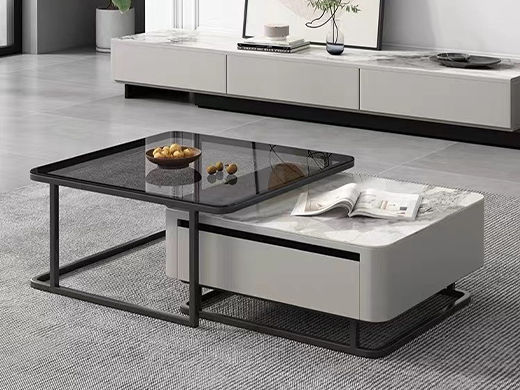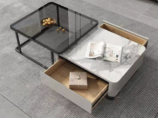 A系优选 现代简约 中纤板(MDF)亮光烤漆+碳素钢脚架+岩板台面+实木松木抽屉 香奈儿 0.8米组合茶几