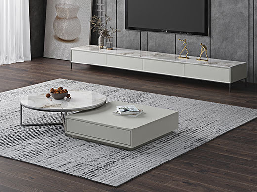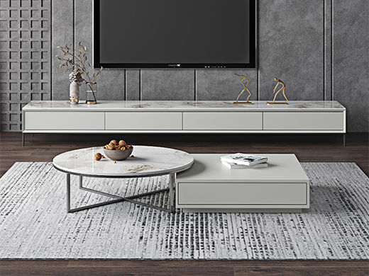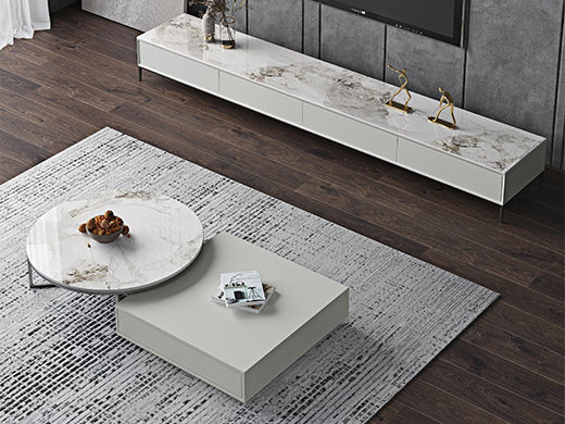 B系优选 现代简约 中纤板(MDF)烤漆+碳素钢脚架+岩板+实木松木抽屉 香奈儿 0.8米组合茶几