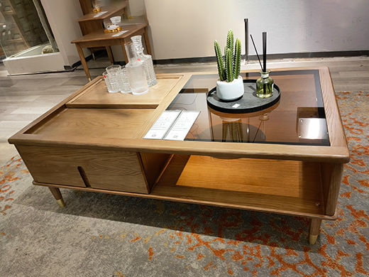 乐芙兰 北欧 进口白蜡木+多层实木板+静音导轨+电镀五金 胡桃色 1.2米茶几¥4098