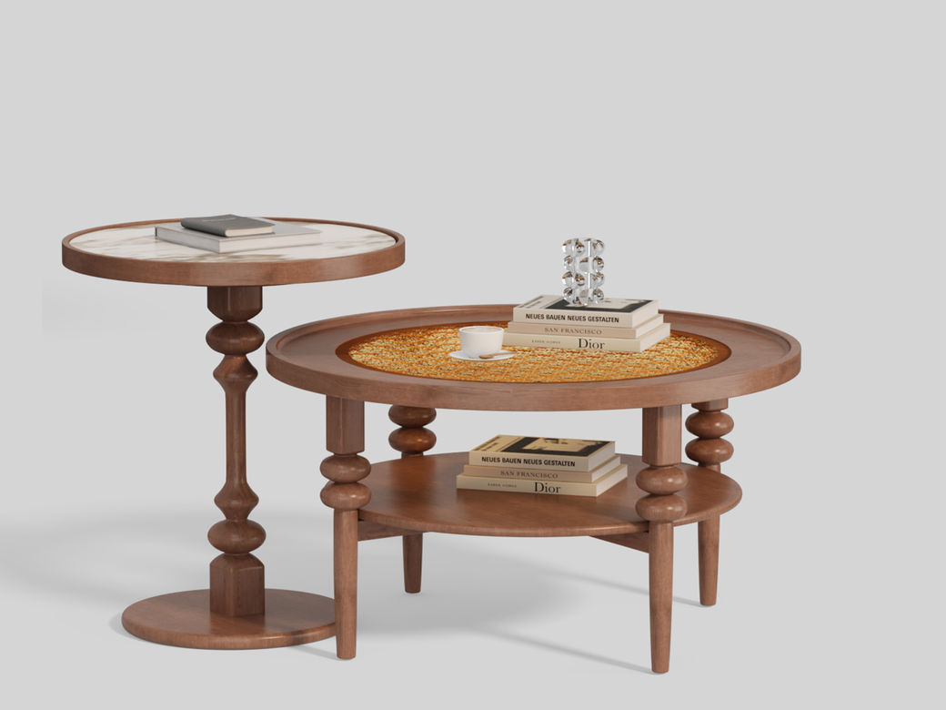 中古·森 网红 中古风 进口樱桃木+多层实木板+钢化玻璃 0.5米小圆几