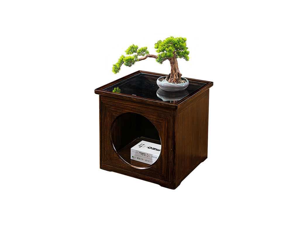 美檀家居 新中式 进口黑檀木+多层实木板+钢化玻璃 黑檀色 0.6米角几边几