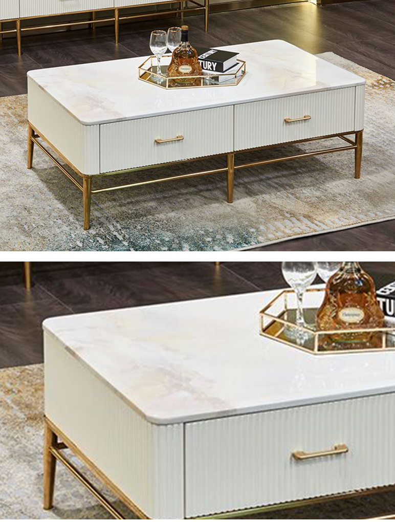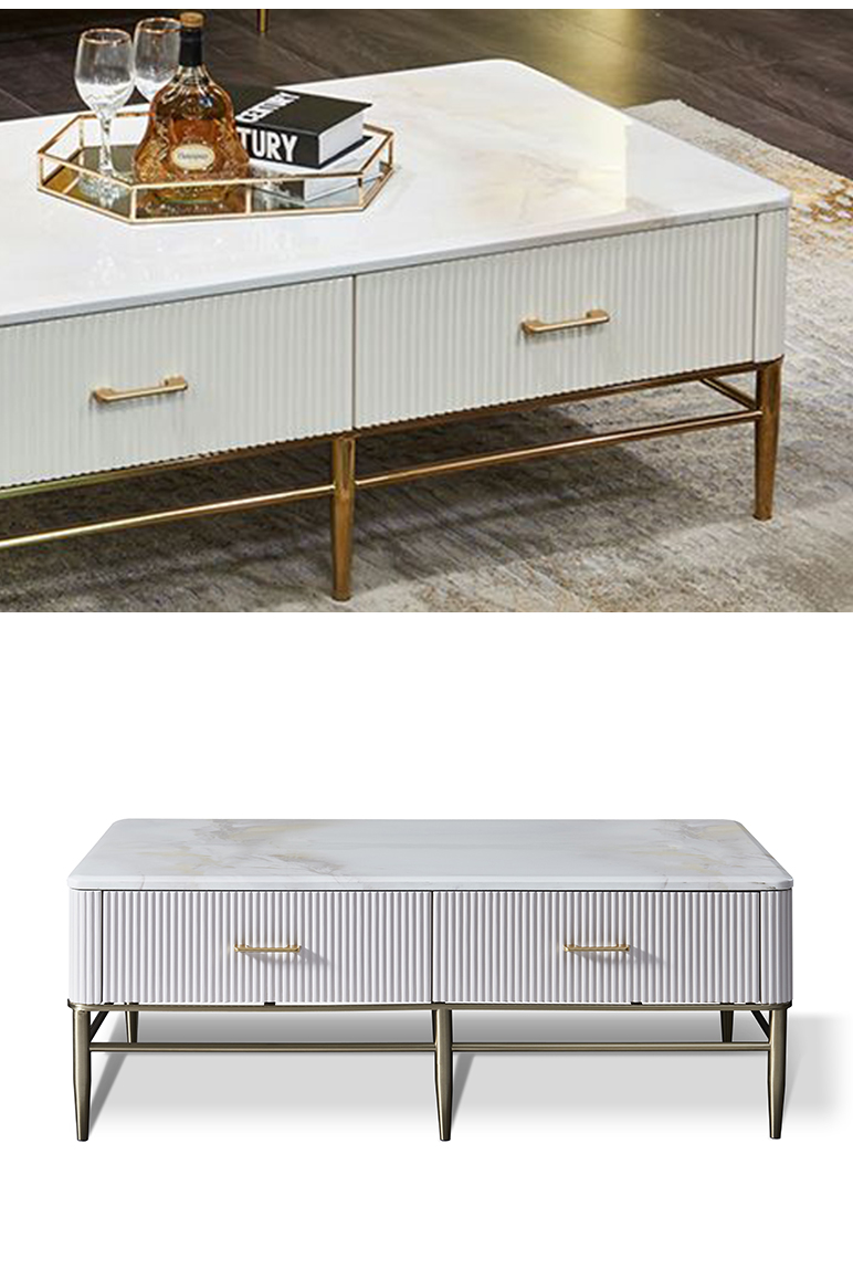 拉斐尔 轻奢 多层实木板+烤漆+电镀不锈钢五金+天然大理石+岩板+静音导轨 1.3米组合茶几¥5415
