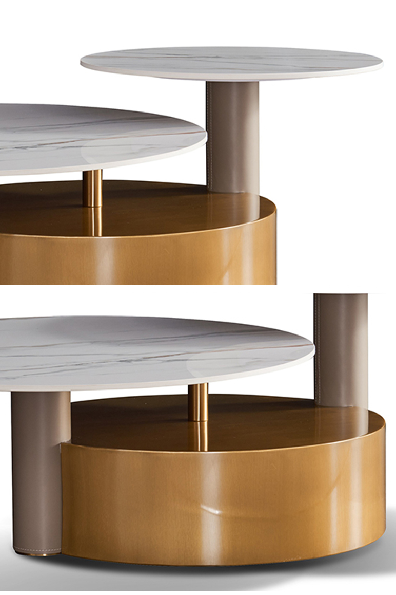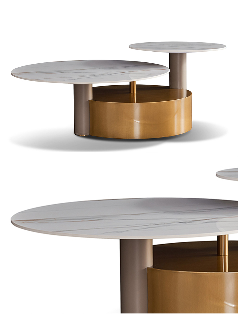 拉斐尔 轻奢 多层实木板+烤漆+电镀不锈钢五金+天然大理石+岩板+静音导轨 1.3米组合茶几¥5415