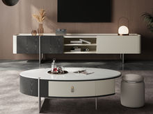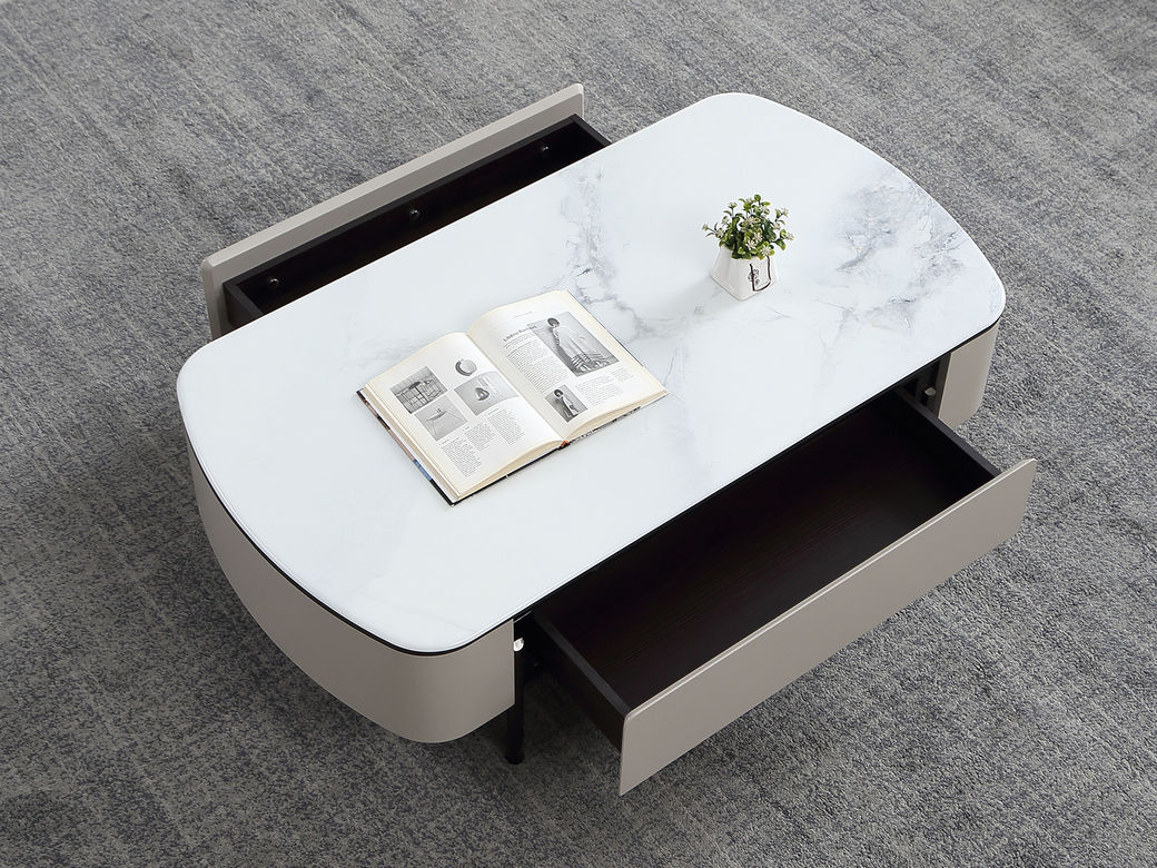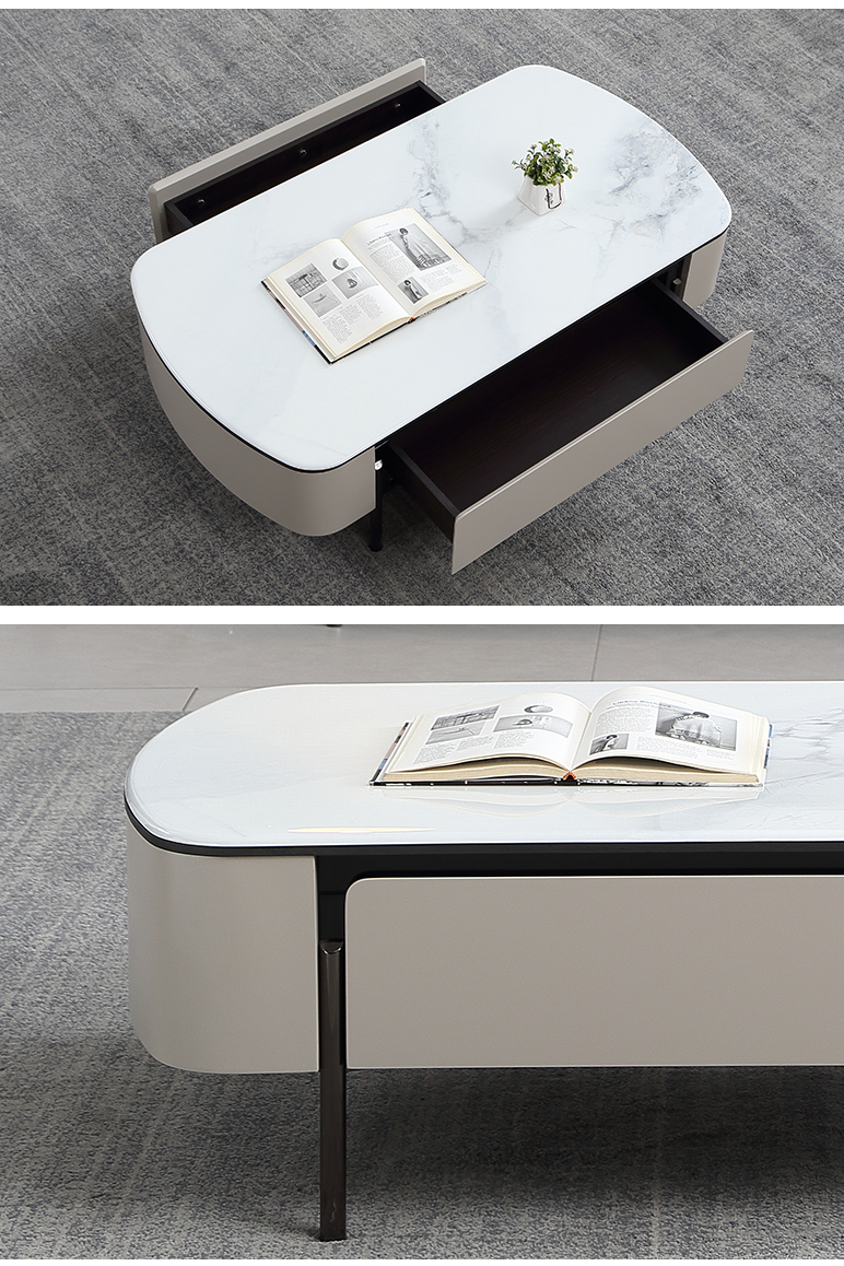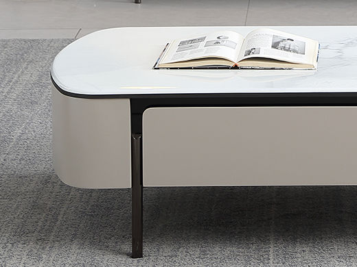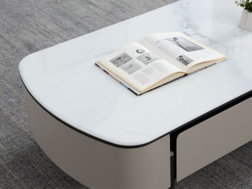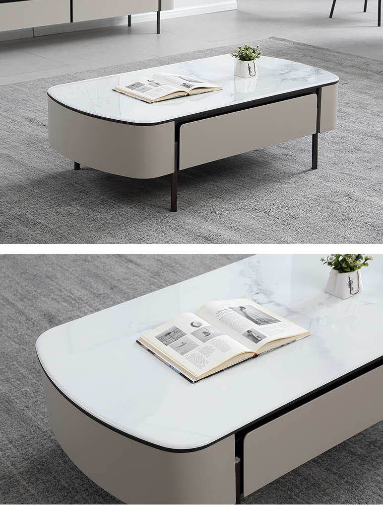 Milos米洛斯 极简 天然烟熏木饰面 天然大理石面 E1级高纤板 环保水性漆 碳素钢金属烤漆脚 1.38米茶几