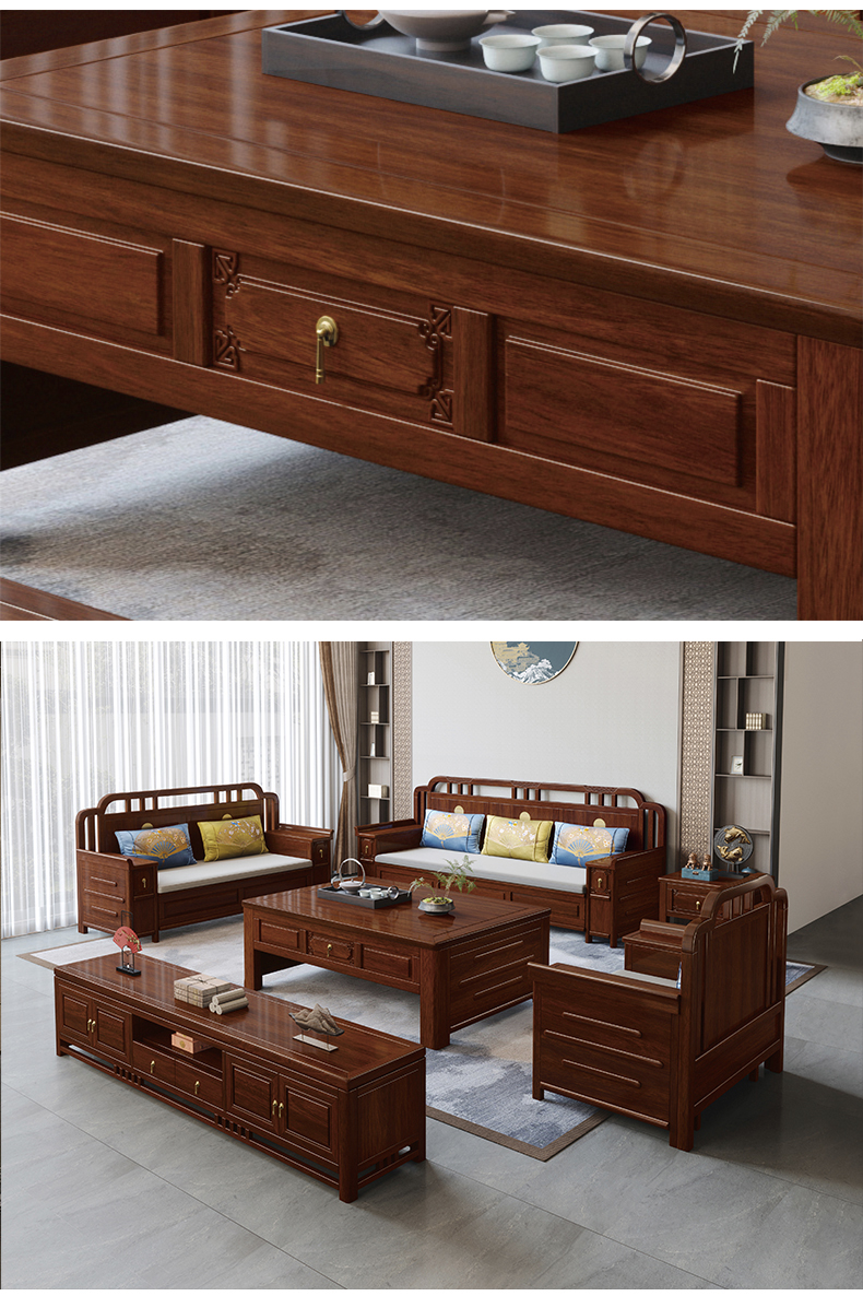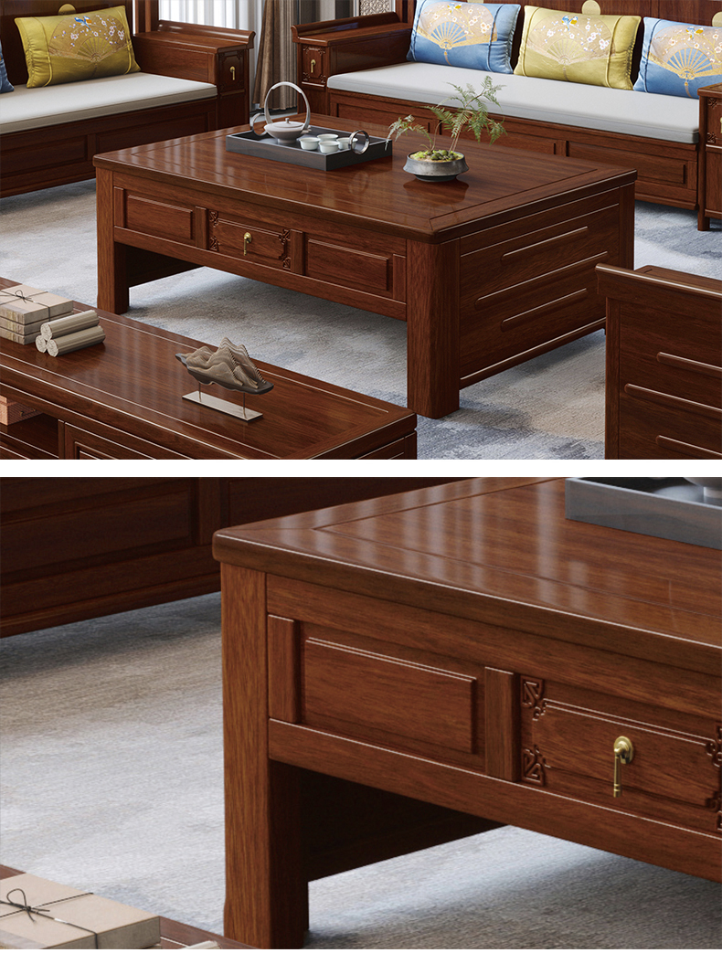 宝瑞·檀风 新中式 印尼金花梨木框架+多层实木板贴皮 紫檀色 1.1米茶几¥3104