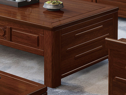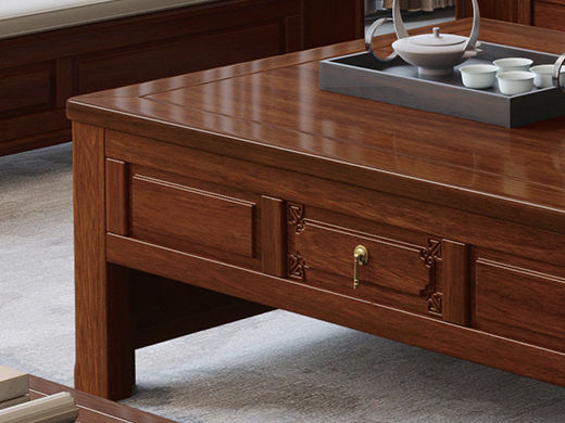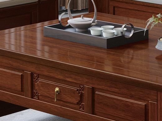 宝瑞·檀风 新中式 印尼金花梨木框架+多层实木板贴皮 紫檀色 1.45米茶几¥3064