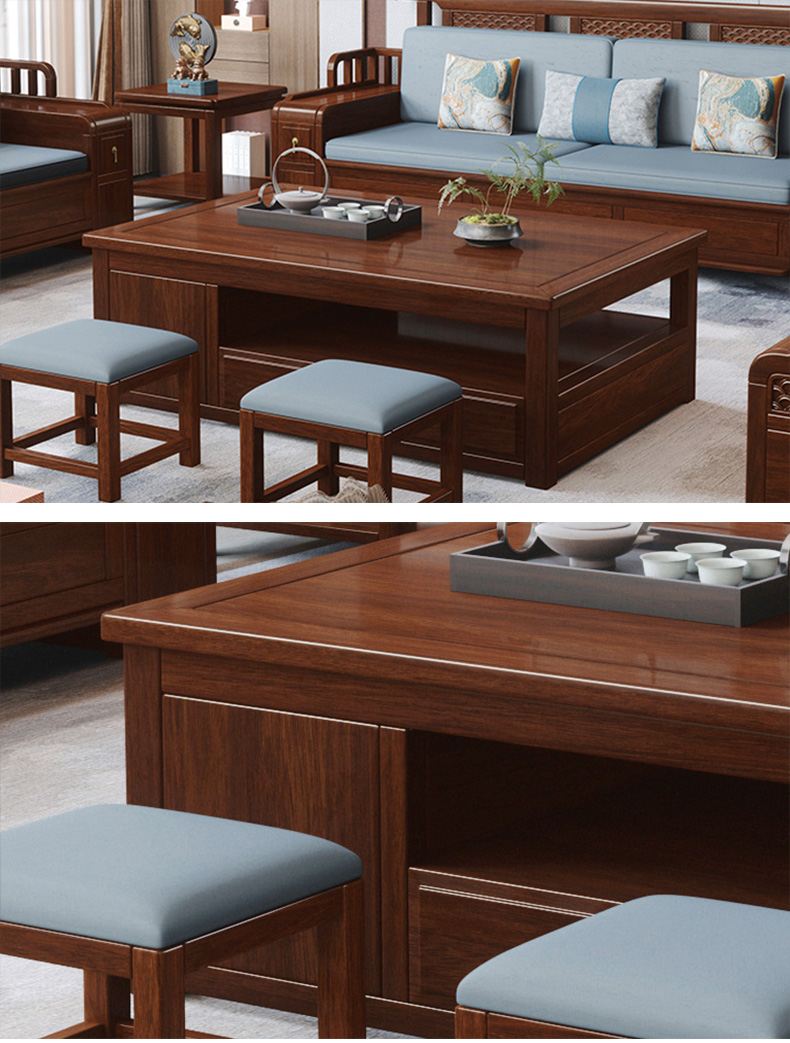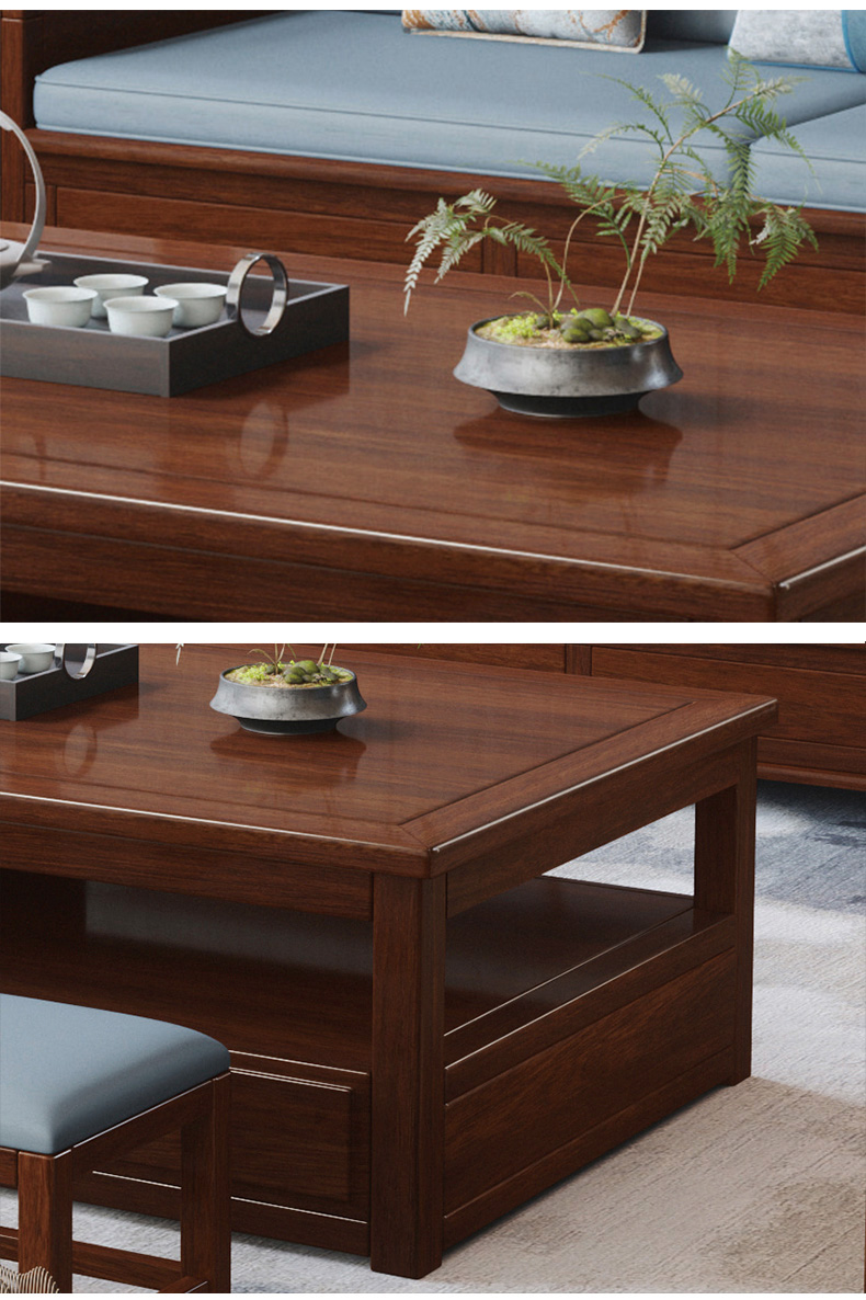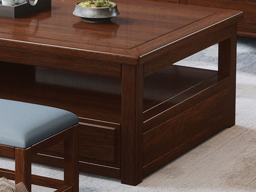 宝瑞·檀风 新中式 印尼金花梨木框架+多层实木板贴皮 紫檀色 1.4米茶几¥1067