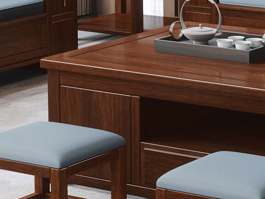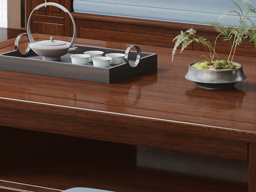 宝瑞·檀风 新中式 印尼金花梨木框架+多层实木板贴皮 紫檀色 1.45米茶几¥3085