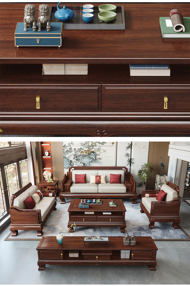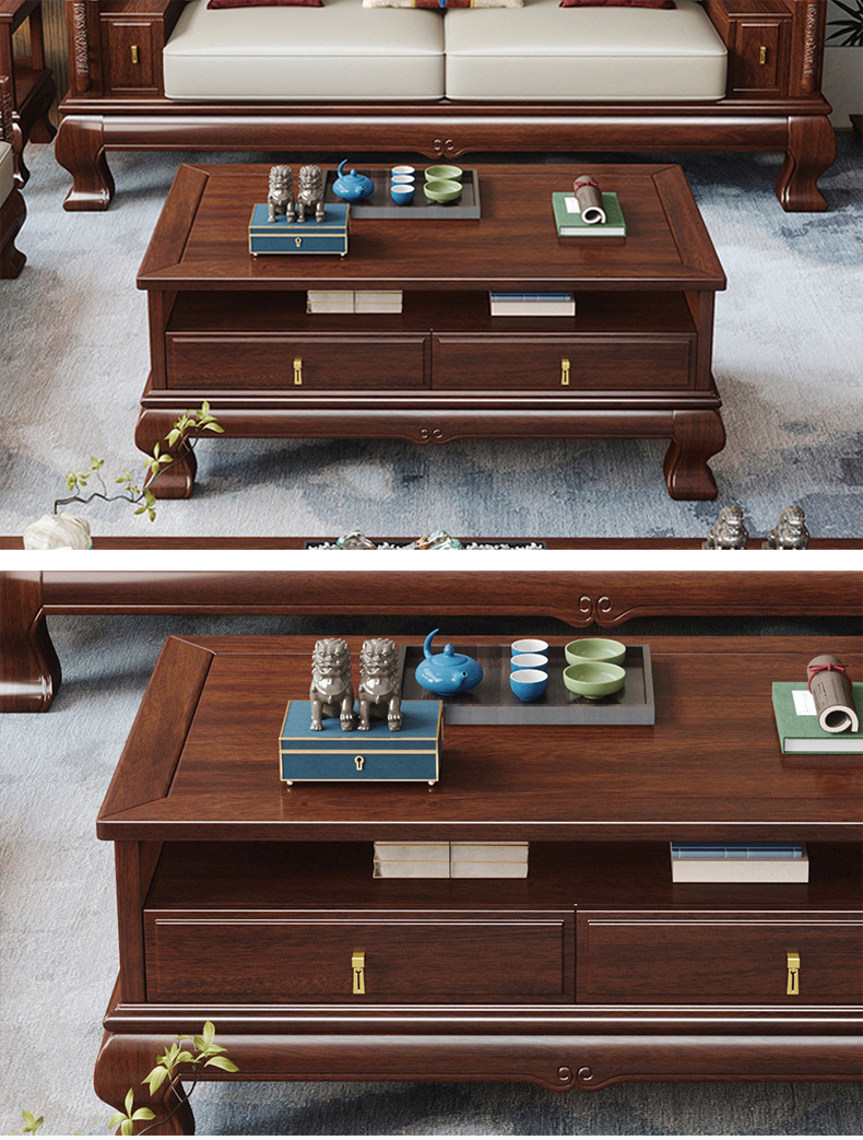 宝瑞·檀风 新中式 印尼金花梨木框架+多层实木板贴皮 紫檀色 1.45米茶几¥3104