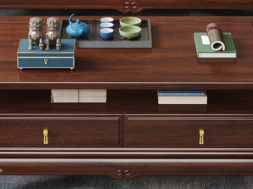 宝瑞·檀风 新中式 印尼金花梨木框架+多层实木板贴皮 紫檀色 1.4米茶几¥1067