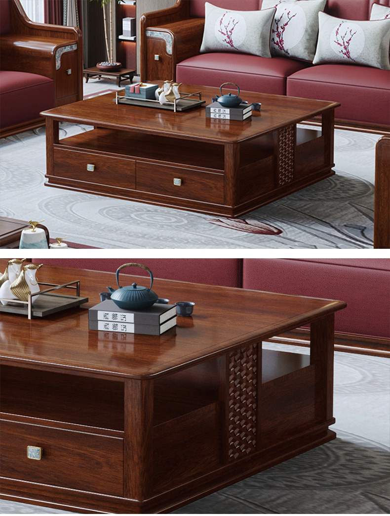 宝瑞·檀风 新中式 印尼金花梨木框架+多层实木板贴皮 紫檀色 1.2米茶几