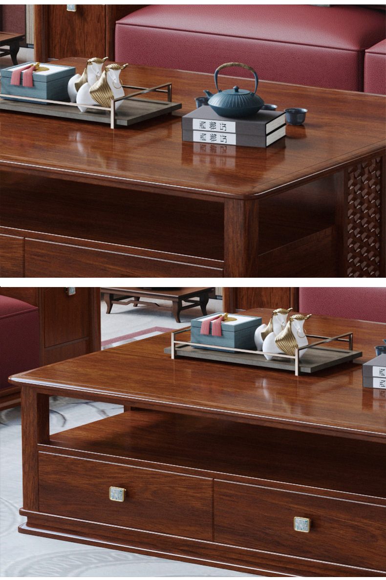 宝瑞·檀风 新中式 印尼金花梨木框架+多层实木板贴皮 紫檀色 1.45米茶几¥3104
